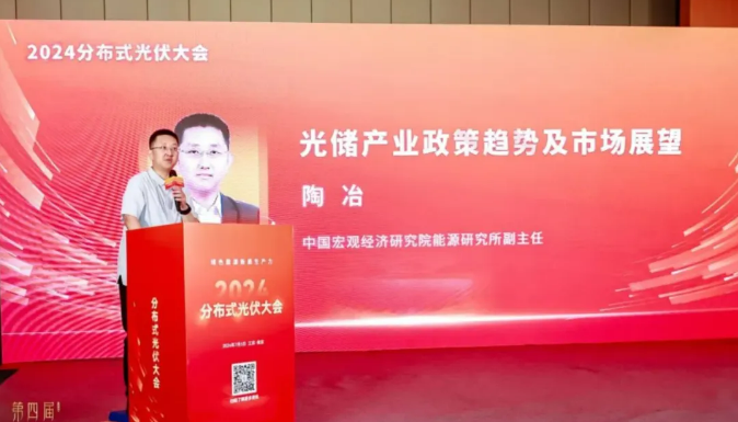 7月5日大会举办了 “2024第四届分布式光伏大会暨工商业储能研讨会”的分布式光伏大会,江苏省工信厅新能源产业处副处长郑青贺,江苏省能源局新能源处主任蔡斌,江苏省光伏产业协会执行理事长、阿特斯阳光电力集团副总裁兼董事长特别助理杜光林,中国宏观经济研究院能源研究所副主任陶冶,江苏省电力交易中心专员敖世玮等领导和机构专家出席了此次论坛,省内多家龙头企业的代表也参加了此次活动。
